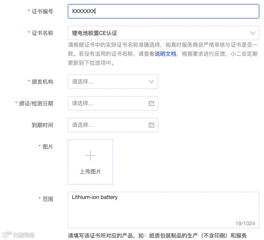 管控范围选择:(根据经营的电池类别选择)电池欧盟CE证书。