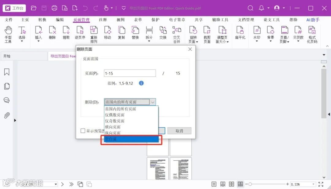 从网上下载的电子书、PDF文献,里面零星散布着空白页,如何快速清理干净?