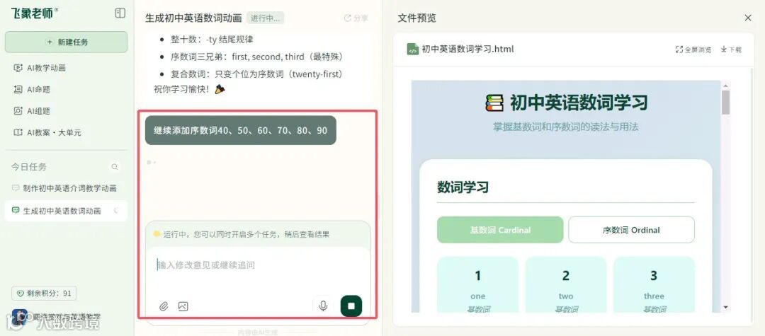 我们发现基数词有20-90全部的整十,序数词不全,继续追问【这是我最喜欢的一点】你想要修改的,添加的,都可以这里追问!