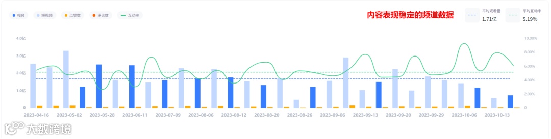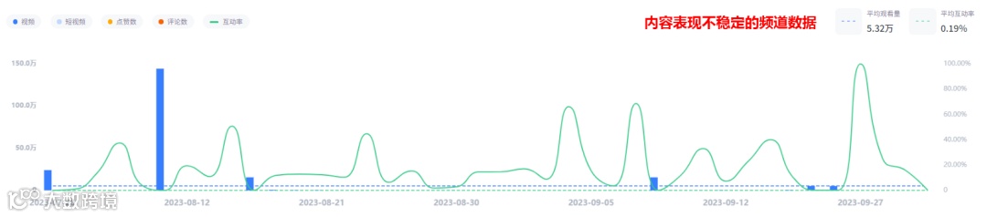 具有稳定曝光量:一个具有稳定曝光量的网红,一般其内容具有比较客观的平均观看量,且曝光量的波动不会很大,起伏比较稳定。
