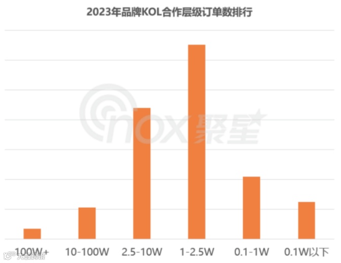 无网红,不营销。据Nox聚星数据显示,在2023年品牌合作KOL层级订单数排行中,1-2.5w量级的小微网红以绝对优势拔得头筹,合作小微网红层级也呈现下沉趋势。
