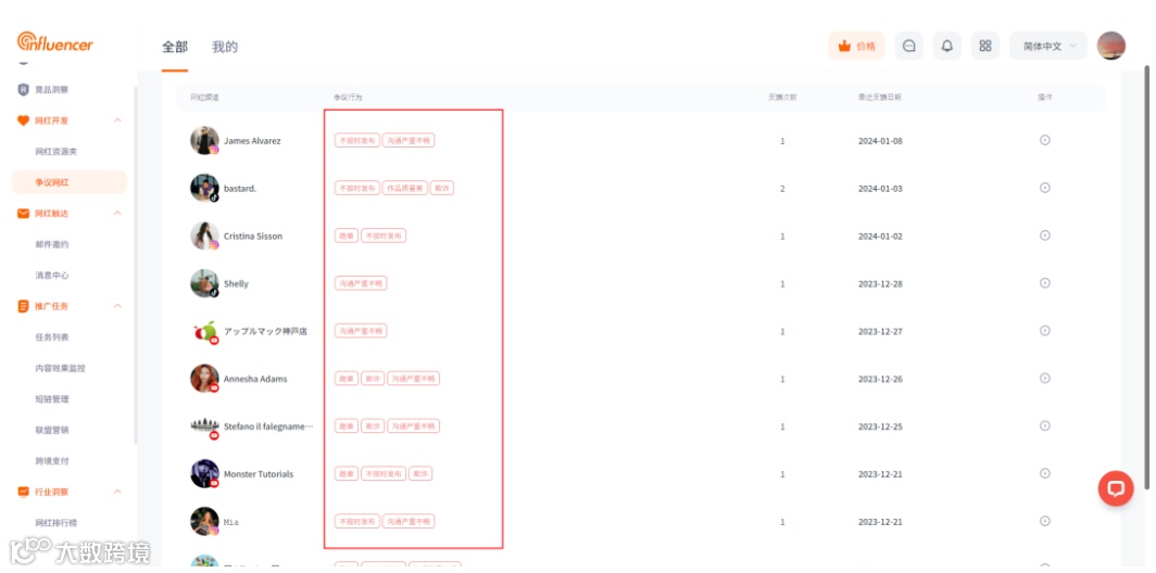 为了帮助广告主在网红匹配中有效规避问题网红,降低海外网红营销风险,提高网红营销成功率,Nox聚星特推出了“网红黑名单”功能,对于广告主合作中遇到的存在争议行为的网红进行公开展示,让网红也能“大众点评”!