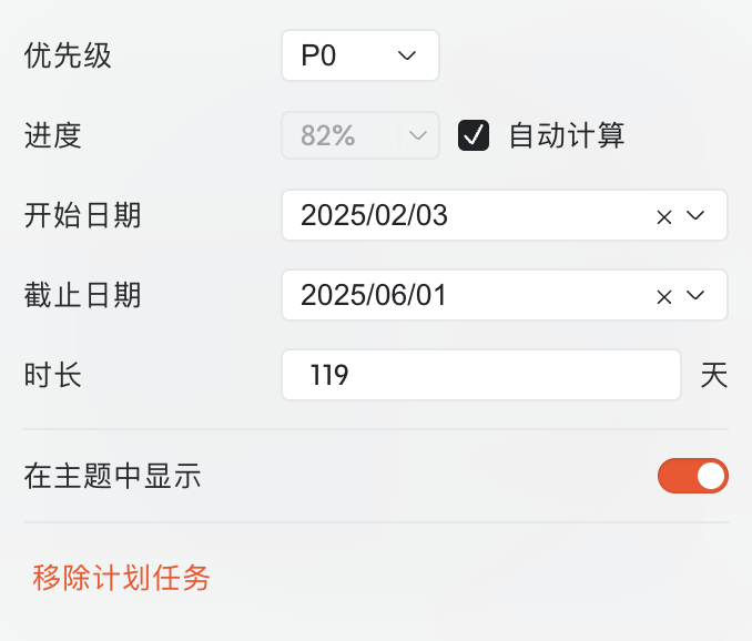 你可以在Xmind的 计划任务(Planned Task)功能中为每个主题插入优先级、进度百分比、开始截止日期等关键信息,让你的思考直接变成可执行的计划任务!