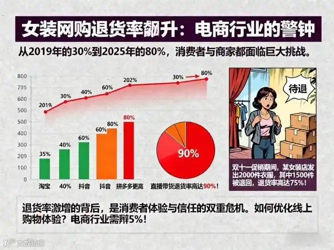这种理性消费心态的转变,在数据上得到了印证。公开数据显示,电商女装退货率高达50%至60%,直播的退货率甚至达80%以上。