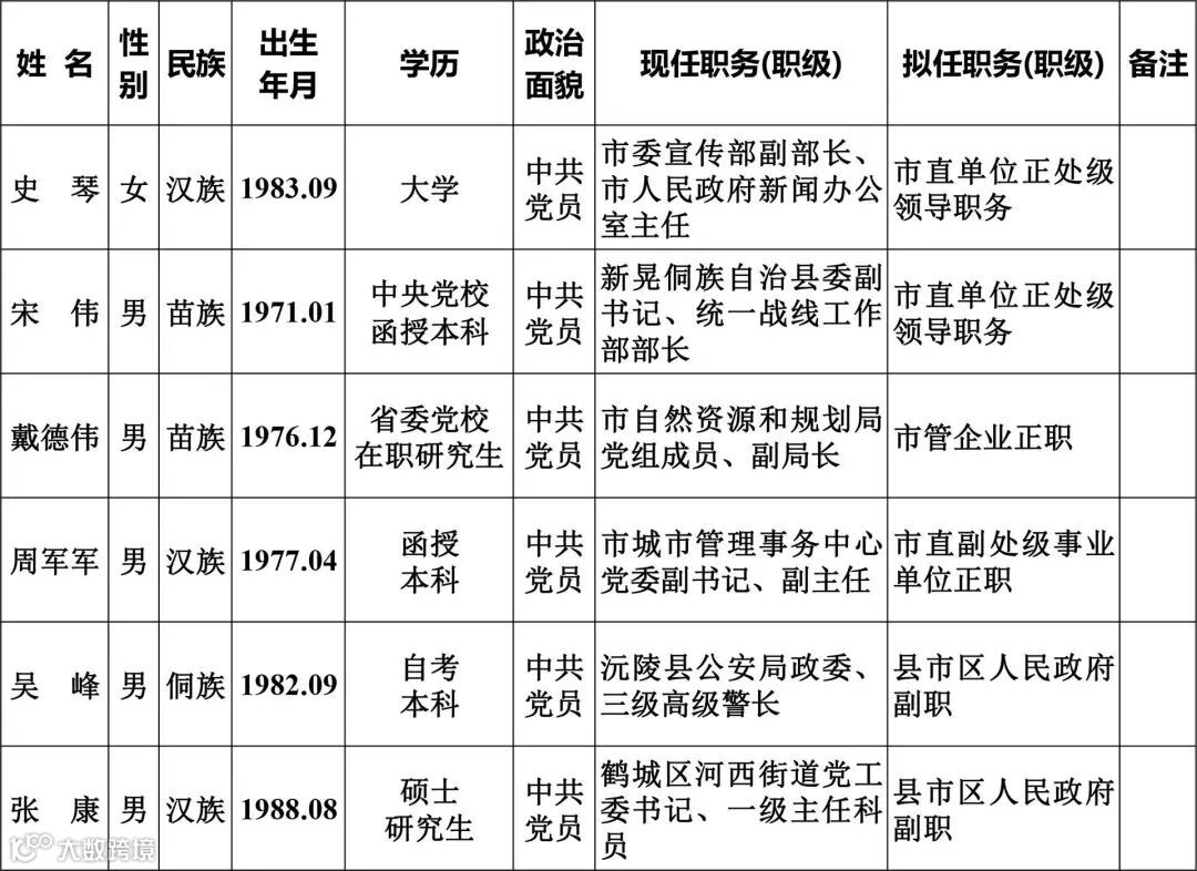 为了加强对干部选拔工作的监督,提高识别和任用干部的准确程度,现对怀化市委常委会会议研究决定的下列拟任人选(提名人选)进行任前公示。
