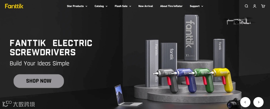 Fanttik品牌主营产品还有轮胎充气机、螺丝刀、汽车吸尘器等汽车配件工具、电动滑板车等,在品牌网站、亚马逊、eBay等各渠道销量都不错。