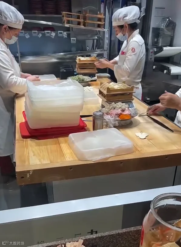 支撑其高端形象的是“现包现煮”的场景营造。店内透明厨房可见阿姨手工包饺,中央厨房统一配送面皮与馅料,宣称“每日新鲜用完”。尽管手工制作带来非标准化问题——如9公分长的一字形饺子被质疑“两口难吃完”,品牌解释为“便于观察馅料”[k]。