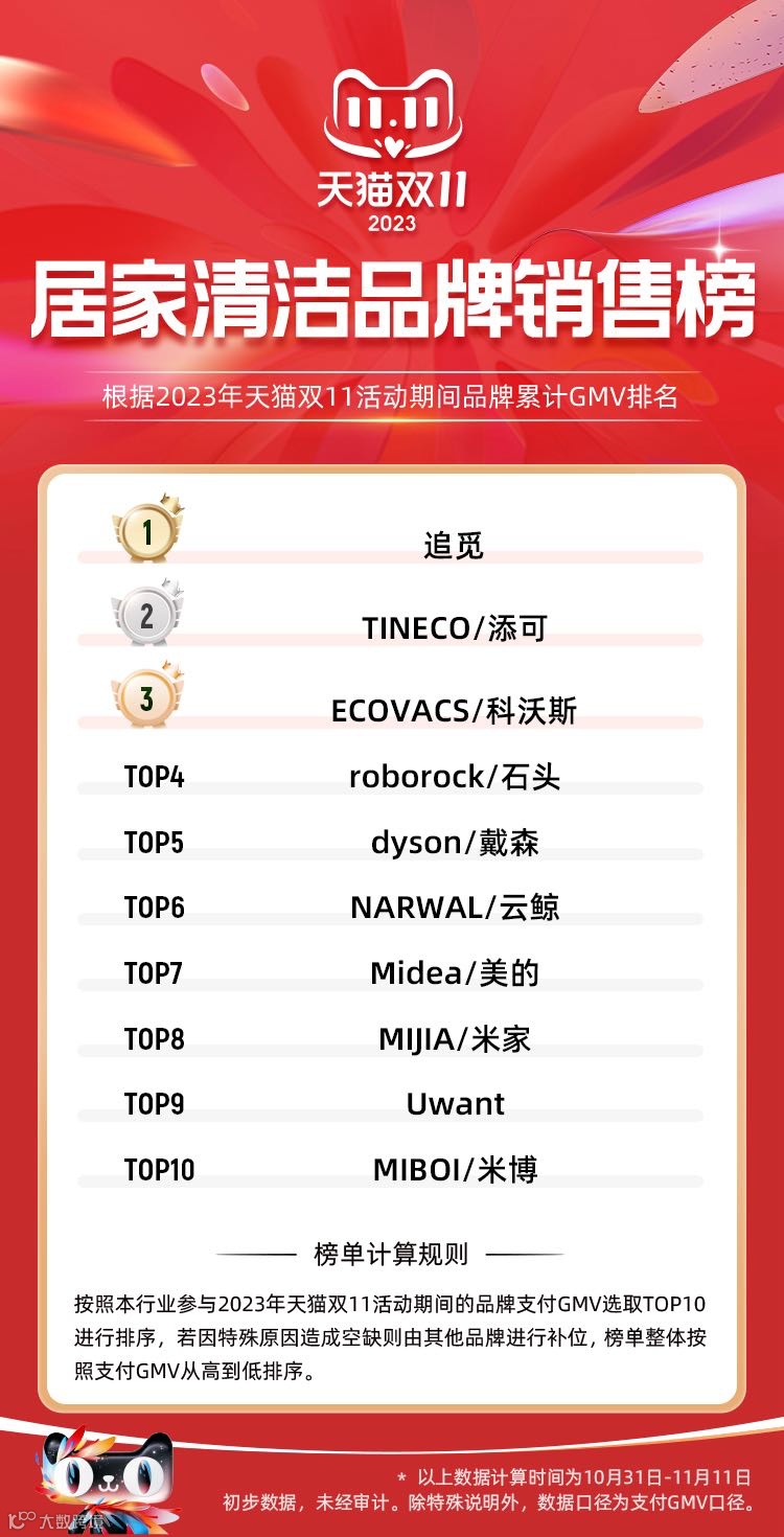 在双11活动中,追觅科技更是凭借全渠道总销售额突破21亿的成绩,成功荣登居家清洁品牌销售榜TOP 1,同时在多个类目榜单上取得了第一的成绩