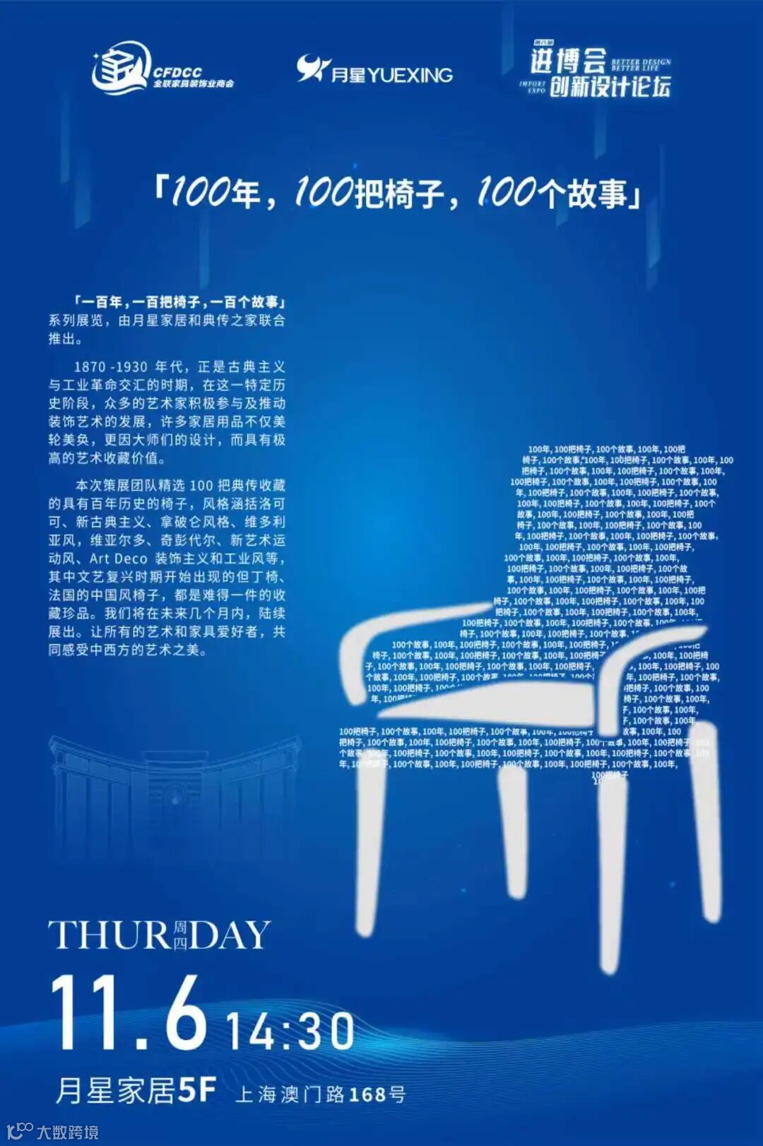 「一百年,一百把椅子,一百个故事」系列展览,作为进博会设计生活联展的单元之一,由月星家居和典传之家联合呈现。近日,展览在上海月星家居盛大开幕。