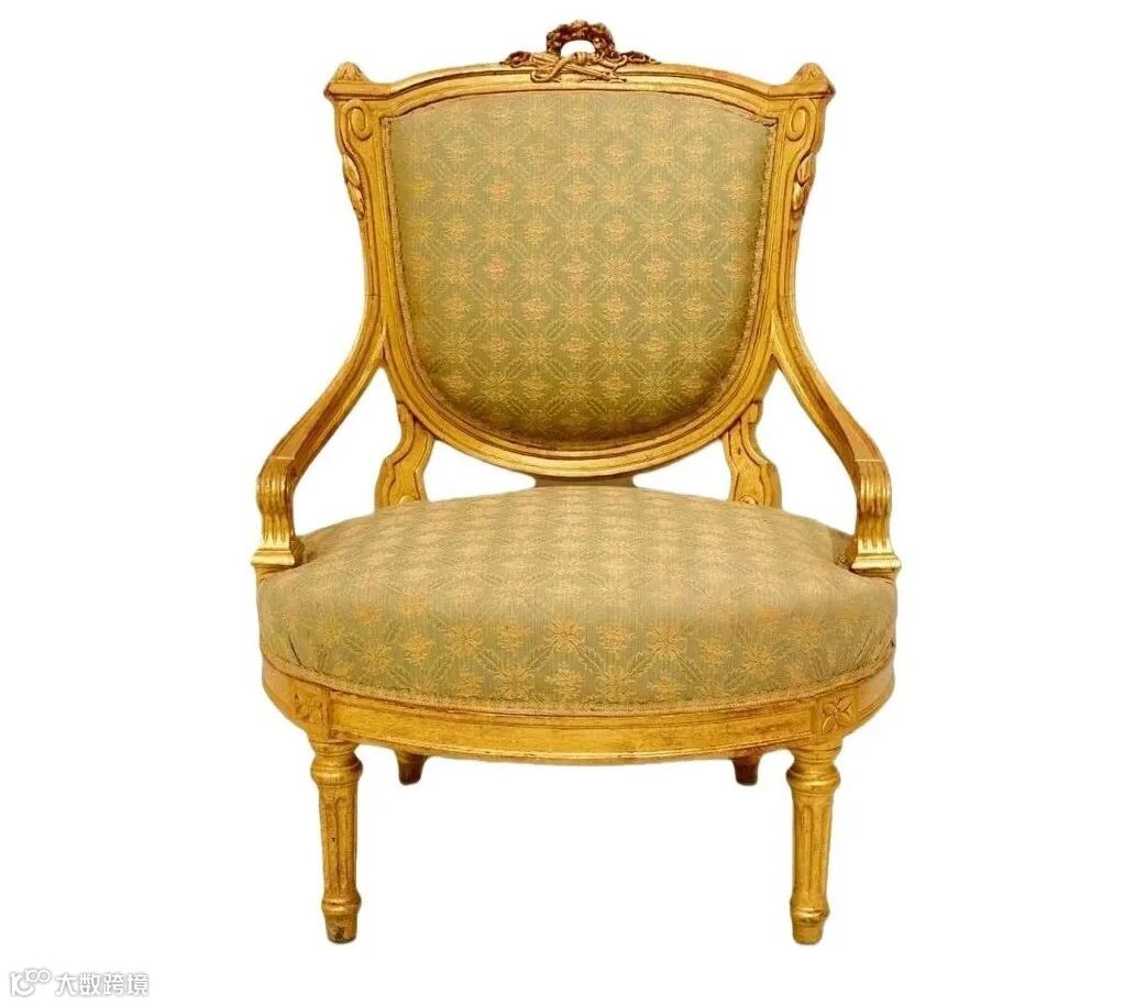 ▲ 法国新古典主义风格鎏金装饰椅 约1940年 48x42x91cm