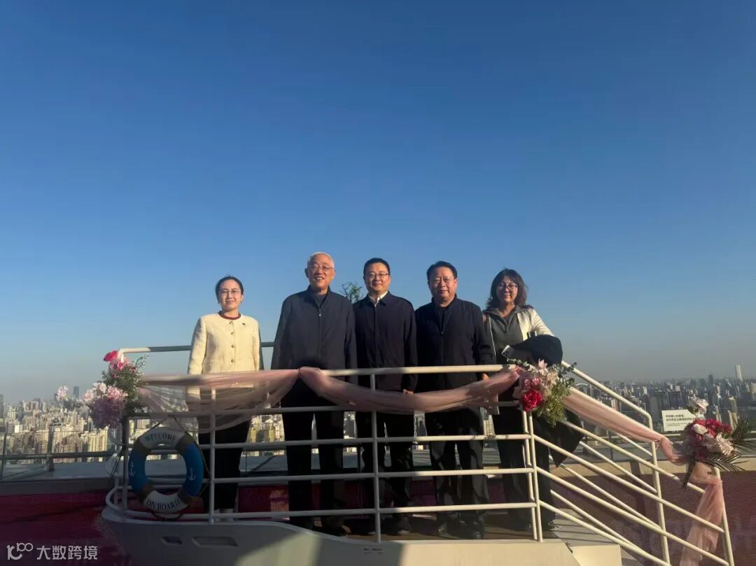 李宏塔(左二)对设于环球观光平台的特色云端婚姻登记点