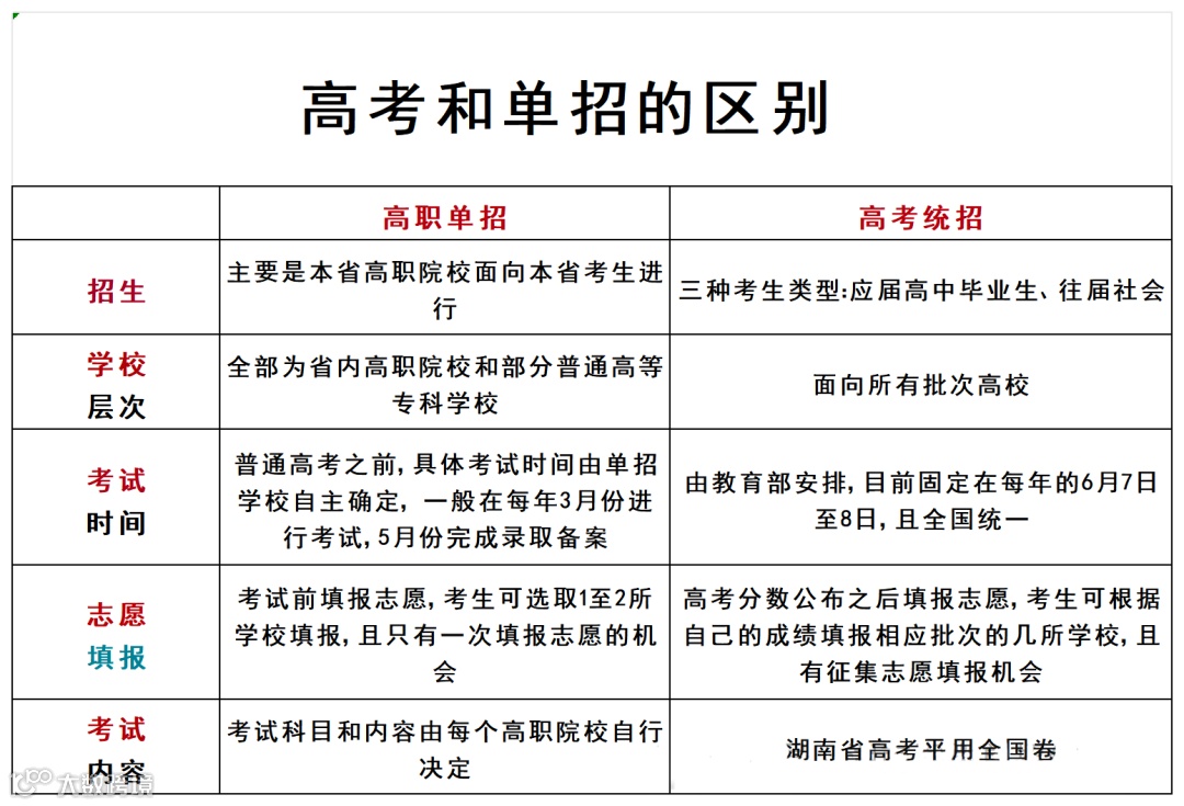 (2)高考的考试,试卷一个省只有唯一的一种,是全国统一卷;单招的试卷不一样,单独招生考试一般院校都有自主命题的权利,试卷都是学院自己出题。