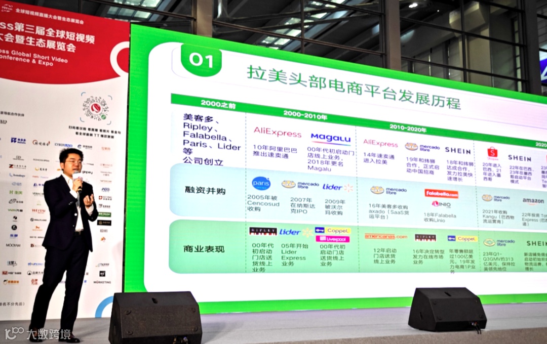 接下来,Harold按照时间线详细解读了各大平台在各时期的战略布局,帮助在场观众全方位了解和比较各平台优劣势,助力他们进军拉美市场。从各平台网站访问量和应用程序下载情况,结合平台公开的财务报表,深入探讨了电商平台间的群雄逐鹿。