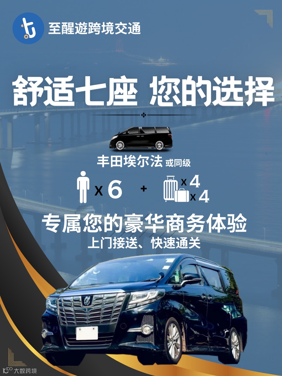 豪华七座埃尔法商务车,最多可坐6人,车内宽敞舒适,无论多人出游还是行李多,都能轻松应对。人均价格更省钱!!!