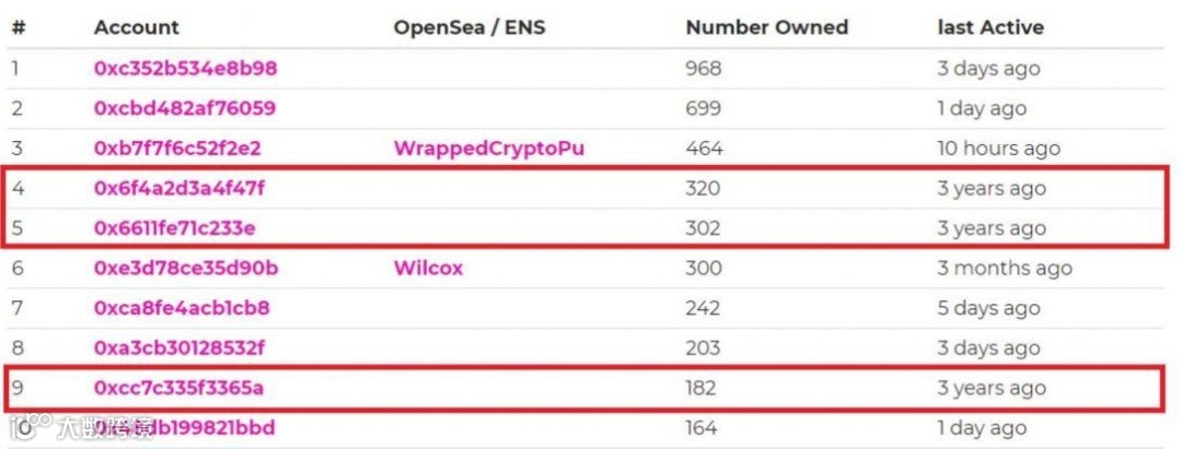 实际可流通的 CryptoPunks 数量或低于 10,000 个,部分持有大量 Punk 的钱包长期处于不活跃状态,可能已永久丢失,进一步加剧供应稀缺性,推高价格上行压力[k]。