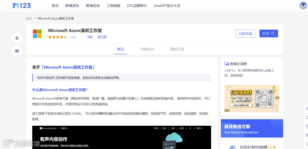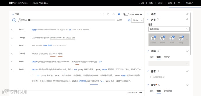 今天,给大家推荐一款来自微软的专业AI配音工具——Microsoft Azure。Microsoft Azure是一款专业文字转语音的AI配音工具,其声音效果媲美真人,为用户提供一站式的AI配音服务。