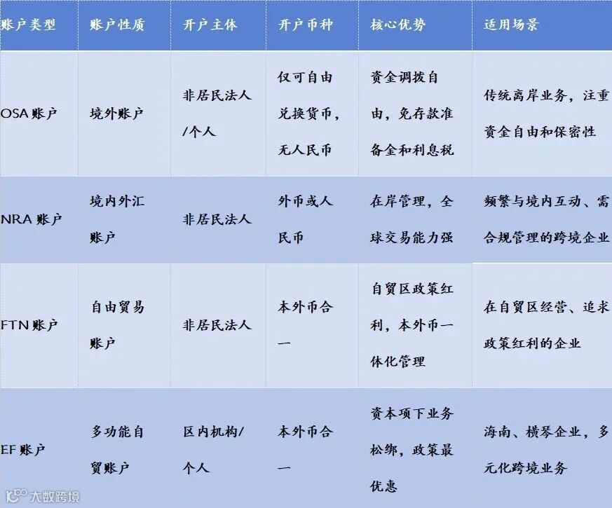 一、四大离岸账户,一张表看懂核心区别