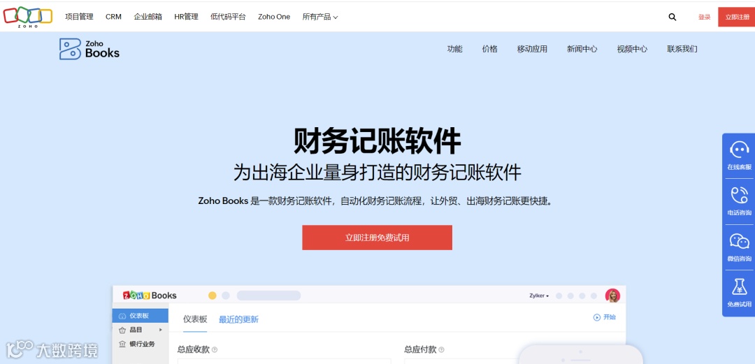 今天,我们给大家推荐一款拥有动态汇率功能的报价单制作工具——Zoho Books。这是一款功能强大的在线记账软件,为企业提供多合一解决方案,该解决方案可定制、可扩展,并始终保持合规。