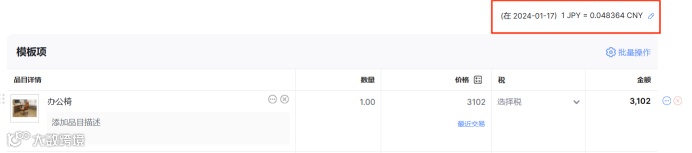 Step4:填写完成后可在模板项上方看到当前汇率,商品价格跟随汇率变化