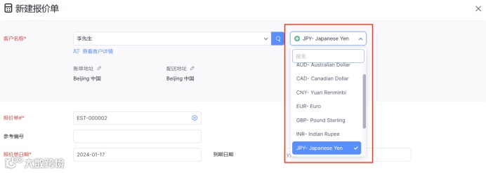 Step5:报价单右侧可以切换币种,切换后动态汇率会同时改变