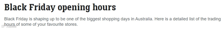 2025年澳大利亚黑色星期五各大商场营业时间汇总