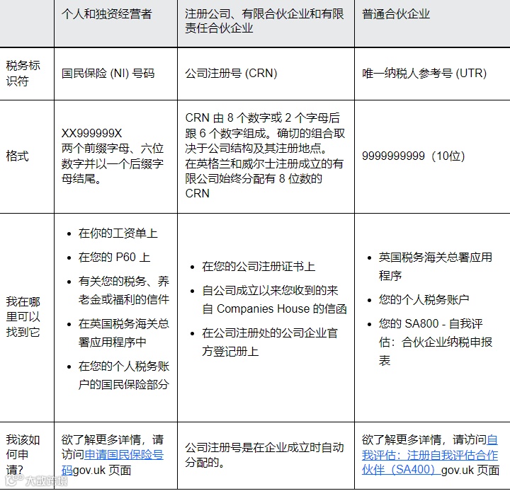 下表说明了所需的具体税务识别信息,包括格式和在哪里找到它的指导: