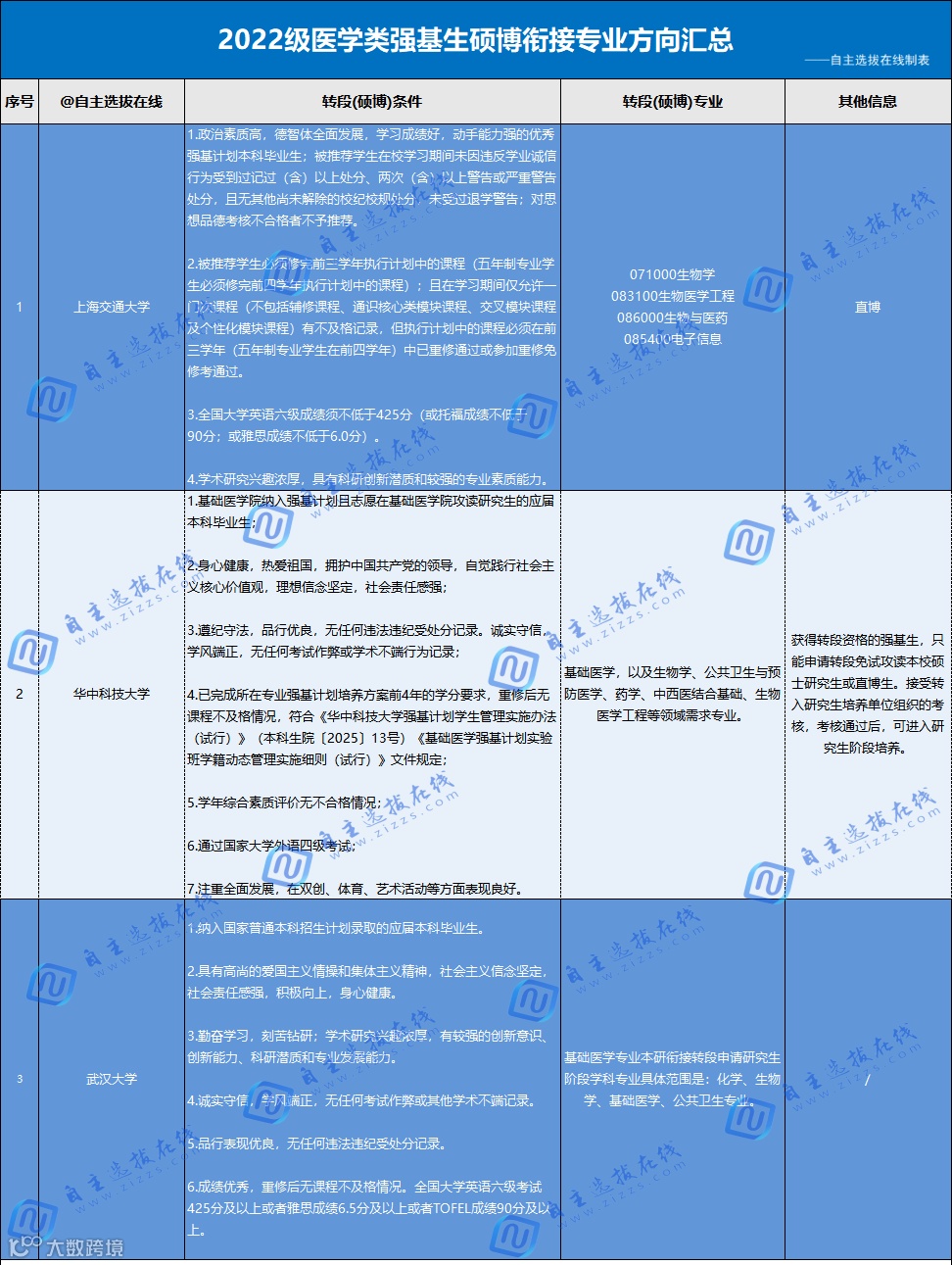 2022级(2026届)各校医学类强基生衔接专业具体情况见下表: