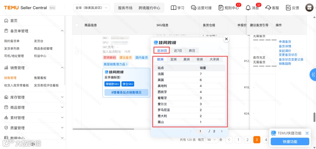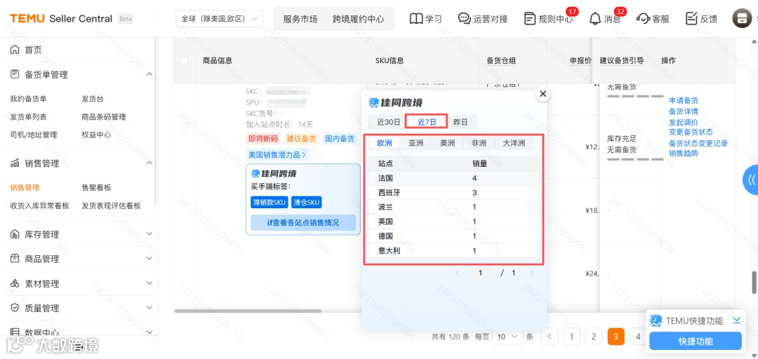 还在为搞不清TEMU各站点销售情况而发愁?佳同跨境TEMU插件来助力!它能精准呈现各站点销售详情。通过它,你可一键查看不同站点的商品销量情况,对各站点销售表现了如指掌。无论是热门站点的持续发力,还是潜力站点的崭露头角,都逃不过你的眼睛。凭借这些清晰数据,轻松制定针对性销售策略,提升店铺整体业绩。