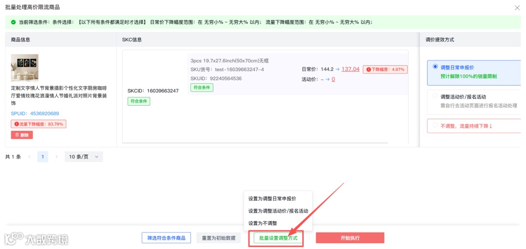 可设置为调整日常申报价,也可设置为调整活动价/报名活动