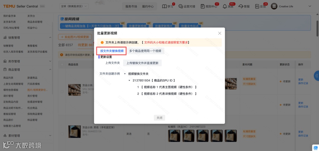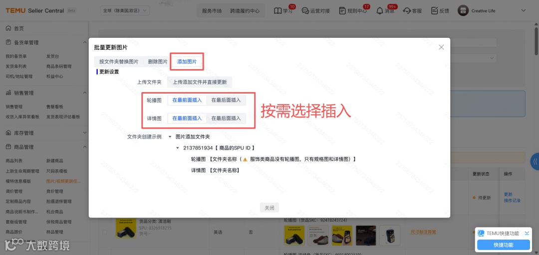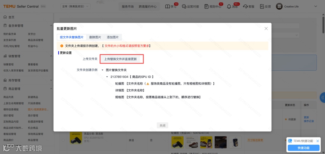 可按文件夹批量更新,文件夹命名对应商品的SPUid