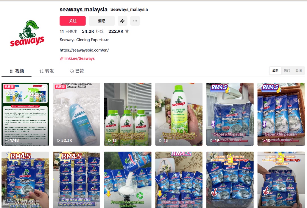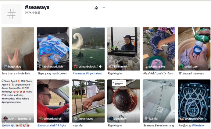 Seaways将国内验证的内容种草模式成功移植。在TikTok账号@seaways_malaysia上,“前后对比”短视频成为流量:发霉的瓷砖接缝、泛黄的水龙头,在喷洒后数秒恢复如新。