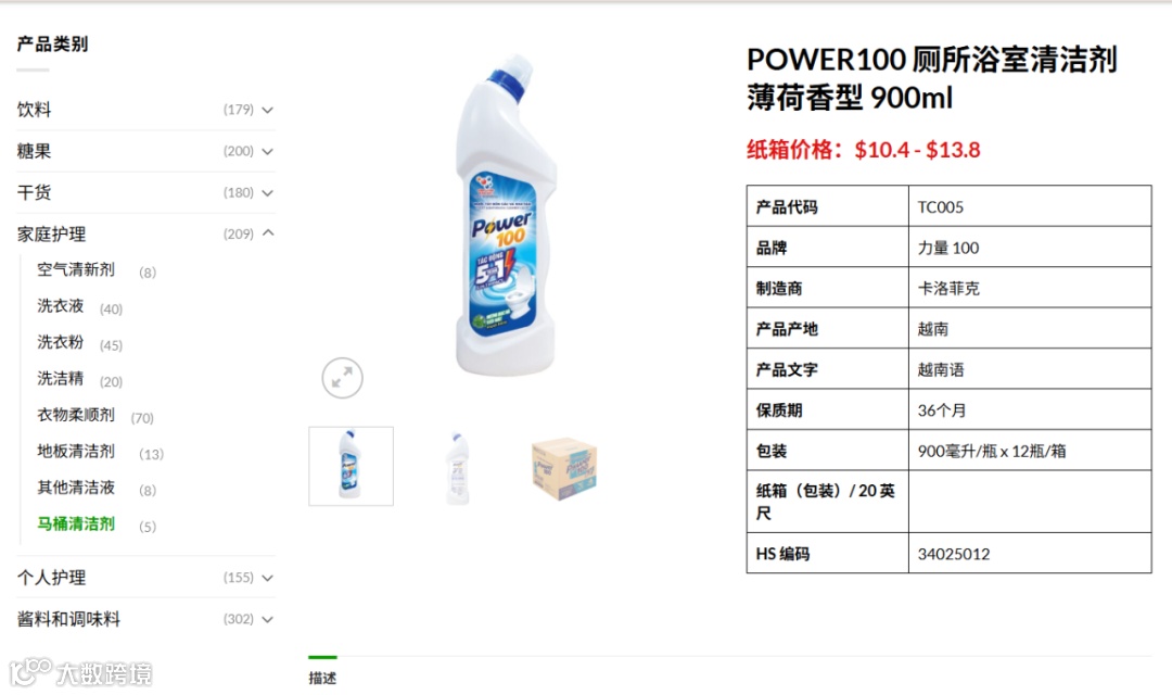 越南清洁剂单瓶约6.5元 图源:Davico