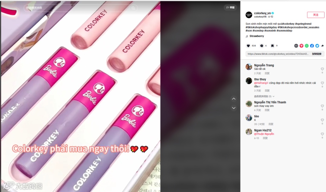 除产品策略外,本土化运营与社媒营销成为Colorkey出海的关键助力[k]。品牌在进入新市场前,优先通过TikTok邀请当地达人和消费者对产品质地、色彩、使用感等进行测试,精准捕捉区域偏好,优化产品迭代[k]。
