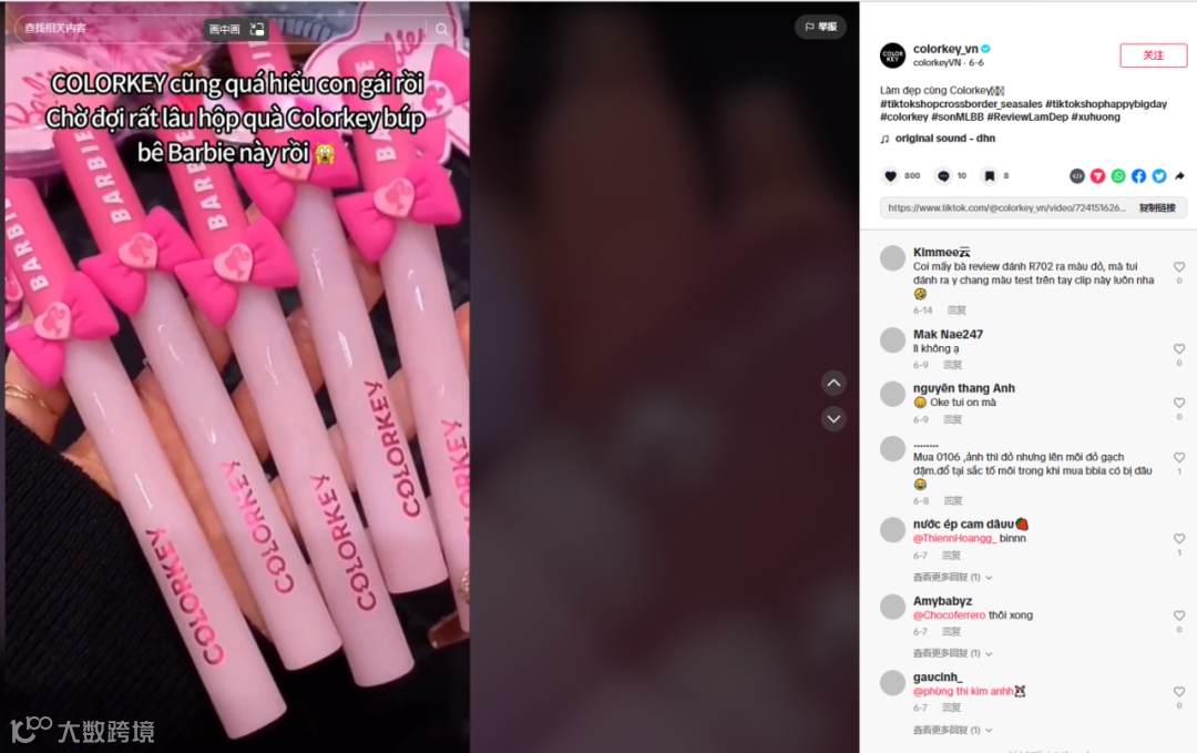 同时,Colorkey积极联动越南本地美妆达人开展内容合作与直播带货[k]。例如,与头部达人“雅莹”合作的3.5小时直播,售出近3000支唇部产品,助力品牌登顶TikTok Shop越南全品类第一[k]。