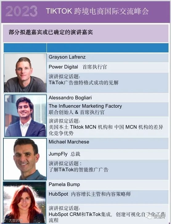 主办方团队历时六个工作周,调研国内外50余家机构,涵盖传统龙头企业与新兴增长企业,深入访谈行业领导者,总结成功经验与竞争策略,形成《TikTok跨境电商市场研究报告》。该报告将于8月初发布,并在峰会期间举行专场发布会[k]。