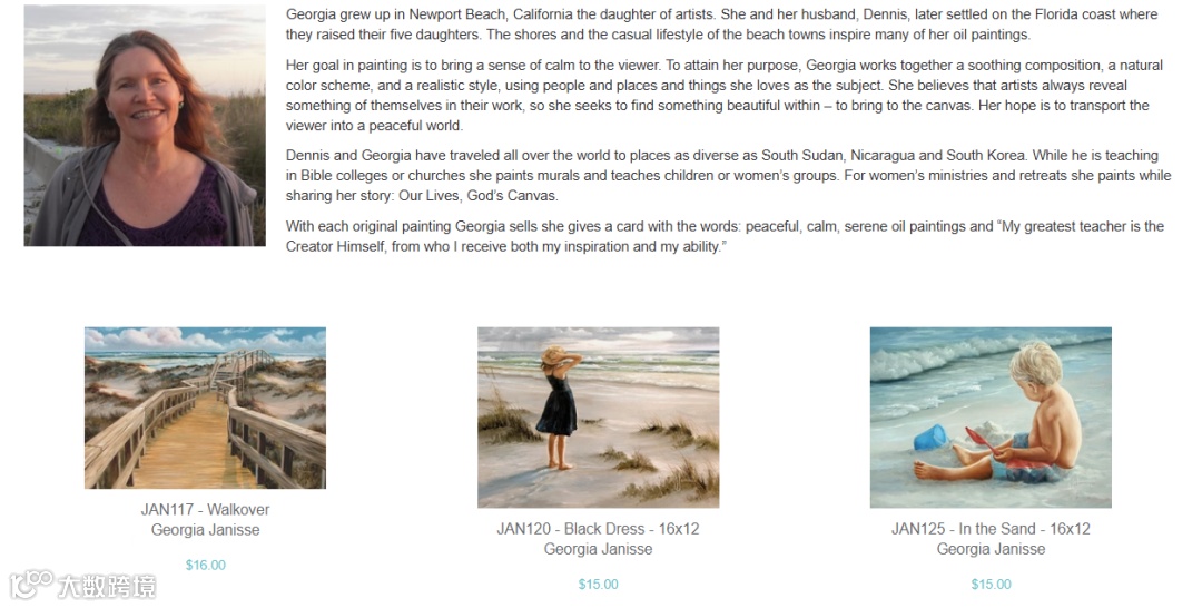 原告Georgia Janisse是一位艺术家,她通过油画作品将海滨小镇的海岸线与悠闲生活方式融入创作灵感。其绘画目标在于为观者带来宁静感受,通过舒缓的构图、自然的色彩搭配以及写实风格,以自己钟爱的人物、地点和物品作为创作主题。