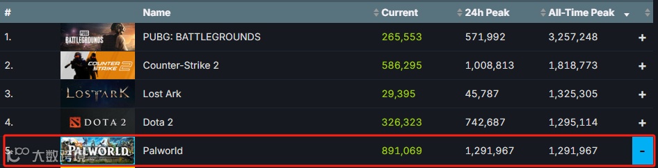 1月19日,支持多人模式的开放世界生存制作游戏《幻兽帕鲁》的EA版本正式上线Steam,上线不到4天取得如下成绩: