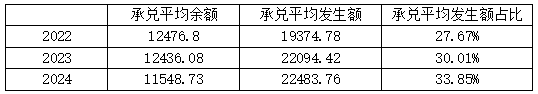 表2-3 2022年-2024年中部地区票据承兑业务情况(单位:亿元)