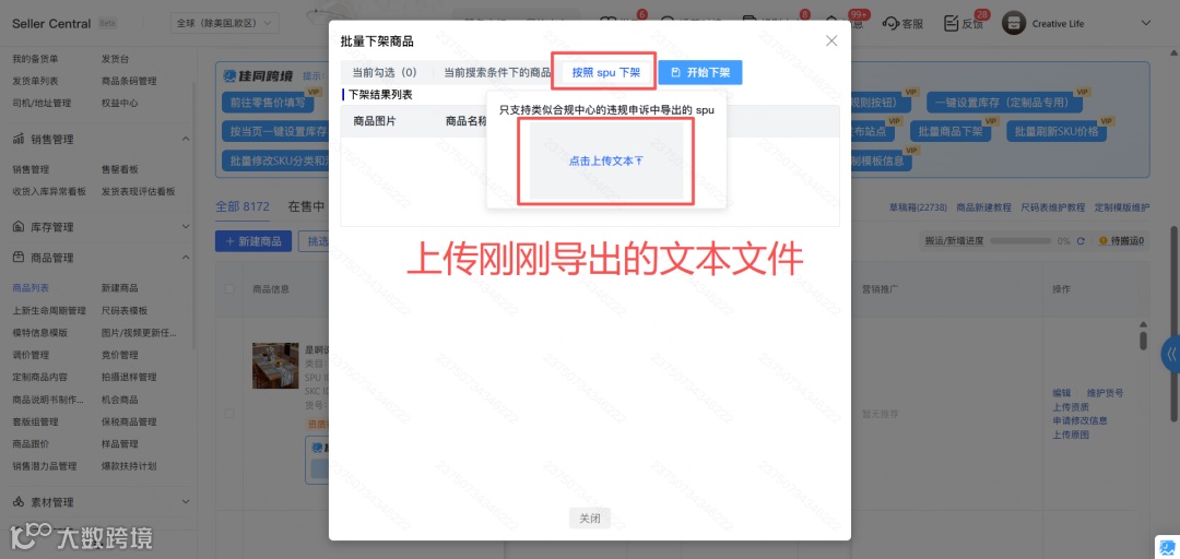 3、选择按照spu下架,上传导出的文本文件