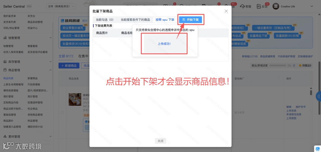 4、点击开始下架