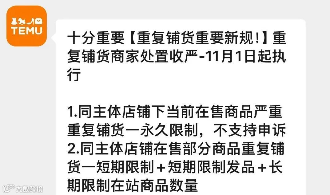 TEMU重复铺货重要新规,重复铺货商家处置收严,11月1日起执行?