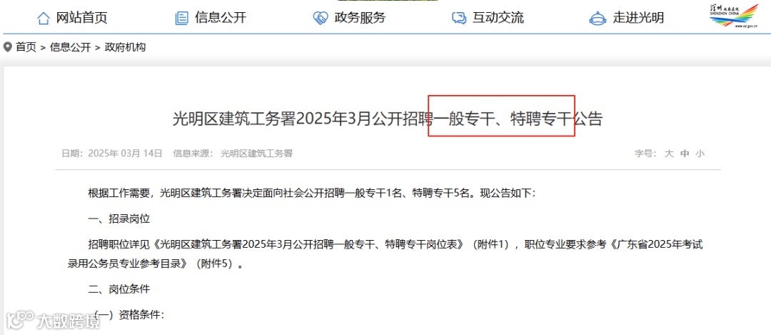 光明区作为深圳建设“世界一流科学城”的核心区,面临人口增长与公共服务压力,实行专干招录模式,又分为一般类专干和特聘专干,均属于劳务派遣人员,与第三方机构签订合同,再派至事业单位工作,无法跨单位调动或转编;