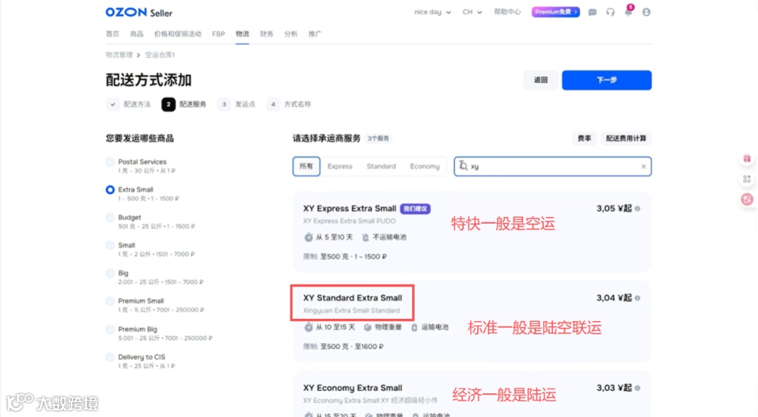 Ozon物流类别划分