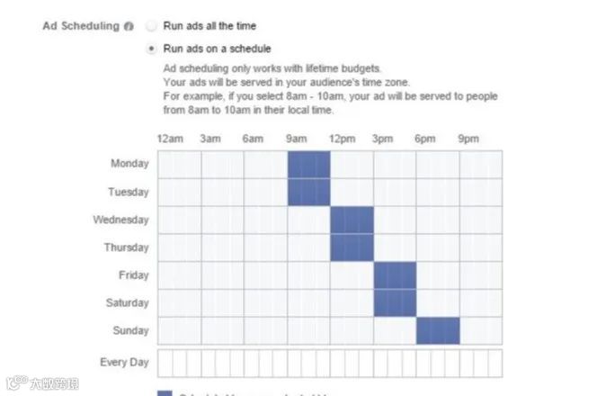 选择“按计划投放广告”选项,即可自定义广告展示的时间段[k]。