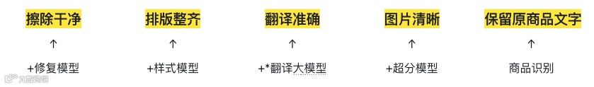 在之前,每次使用图片翻译,大都会因为擦除不干净、字体不统一、排版不整齐以及商品文字也被误擦除等各种细节困扰,还要搭配编辑器进行二次编辑,费时费力。现在鬼手剪辑能大幅解决上述问题。相比于所有友商,在翻译后的首次可用率和首次完美比率上提升了25%-70%的效果。