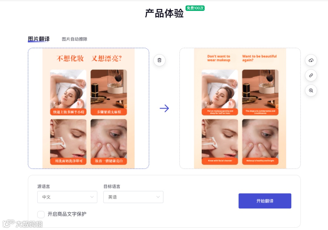 对电商和营销类图片的翻译排版特别优化,产品效果出众,图翻首次可用率和完美率在全球领先,10大特色功能供你尽情享用: