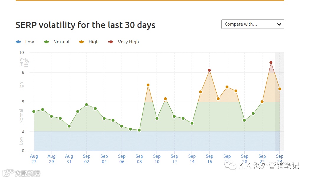 SEMrush Sensor(算法波动监测):每日更新谷歌搜索结果波动数据,结合行业与国家维度,预警潜在算法更新[k]。