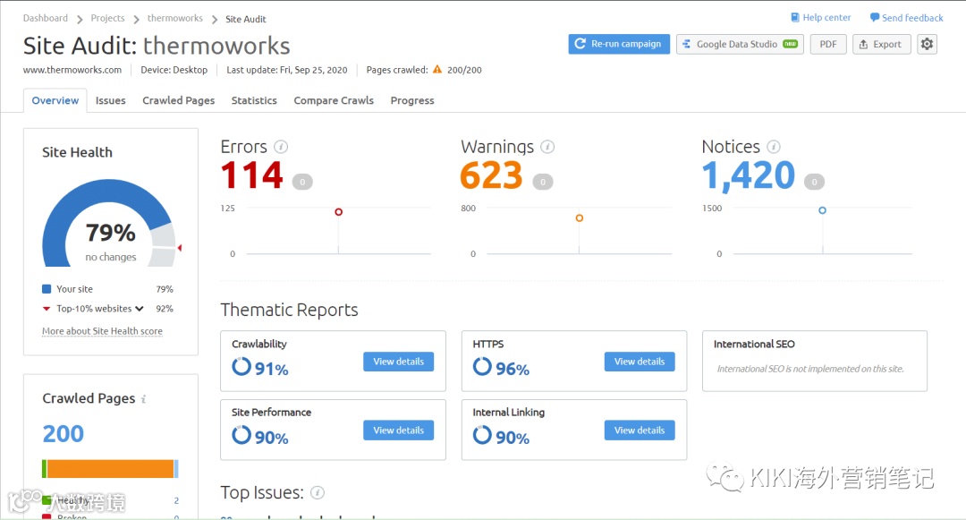 Site Audit(网站审核):自动检测80余项SEO技术问题,如重复内容、死链、HTTPS配置、hreflang标签等,支持移动与桌面端独立分析[k]。