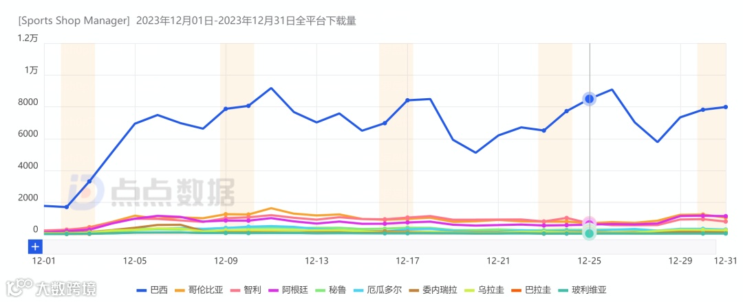 点点数据显示,截至12月底,《Last War:Survival》南美地区总下载量为12.3万。其中,巴西贡献了近9成(89.78%)的下载量。