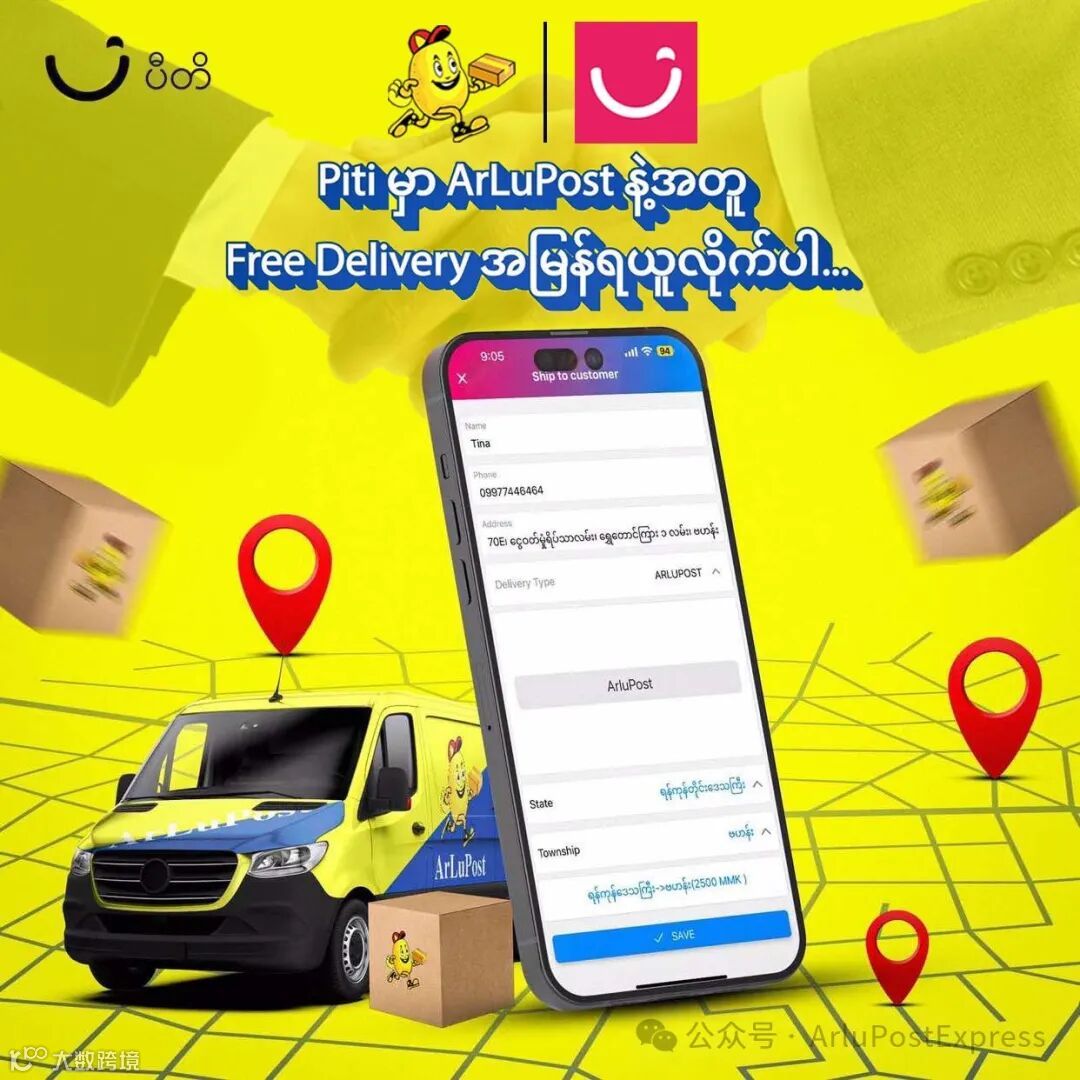 作为缅甸领先的线上电商平台,Piti将与ArluPost共同努力,确保您的每一次购物都能享受到高效可靠的配送服务。不论您购买的是日常用品还是特色商品,都可以放心选择ArluPost配送到家。期待您的使用,共同体验便捷与舒适!
